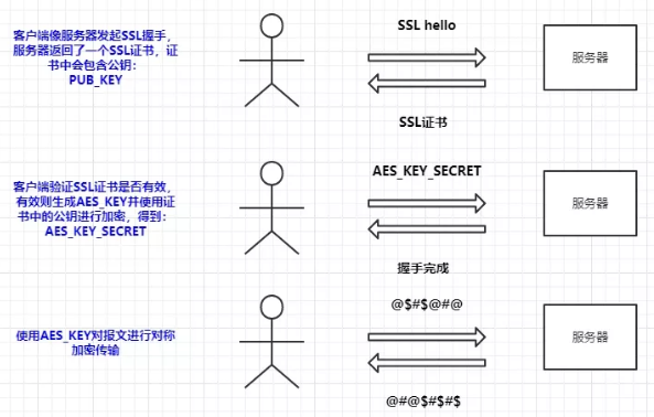 HTTPS 其实是SSL+HTTP的简称,当然现在SSL基本已经被TLS取代了,不过接下来我们还是统一以SSL作为简称,SSL协议其实不止是应用在HTTP协议上,还在应用在各种应用层协议上,例如:FTP、WebSocket。其实SSL协议大致就和上一节非对称加密的性质一样,握手的过程中主要也是为了交换秘钥,然后再通讯过程中使用对称加密进行通讯,大概流程如下: