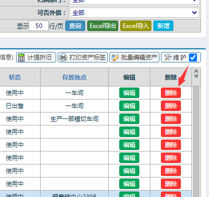 以管理员身份登录进入固定资产管理模块,找到需要报废的固定资产,直接删除即可: