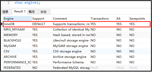 2)查询数据库的引擎