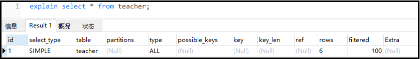 explain select * from teacher where tname = 'abc' ;