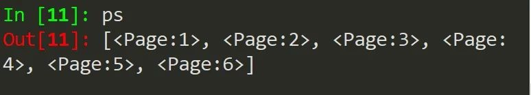 首先导入要用到的两个库。在pdfplumber中,open()函数是用来打开PDF文件,该代码用的是相对路径。.open().pages则是获取PDF的页数,打印ps值可以得到如下