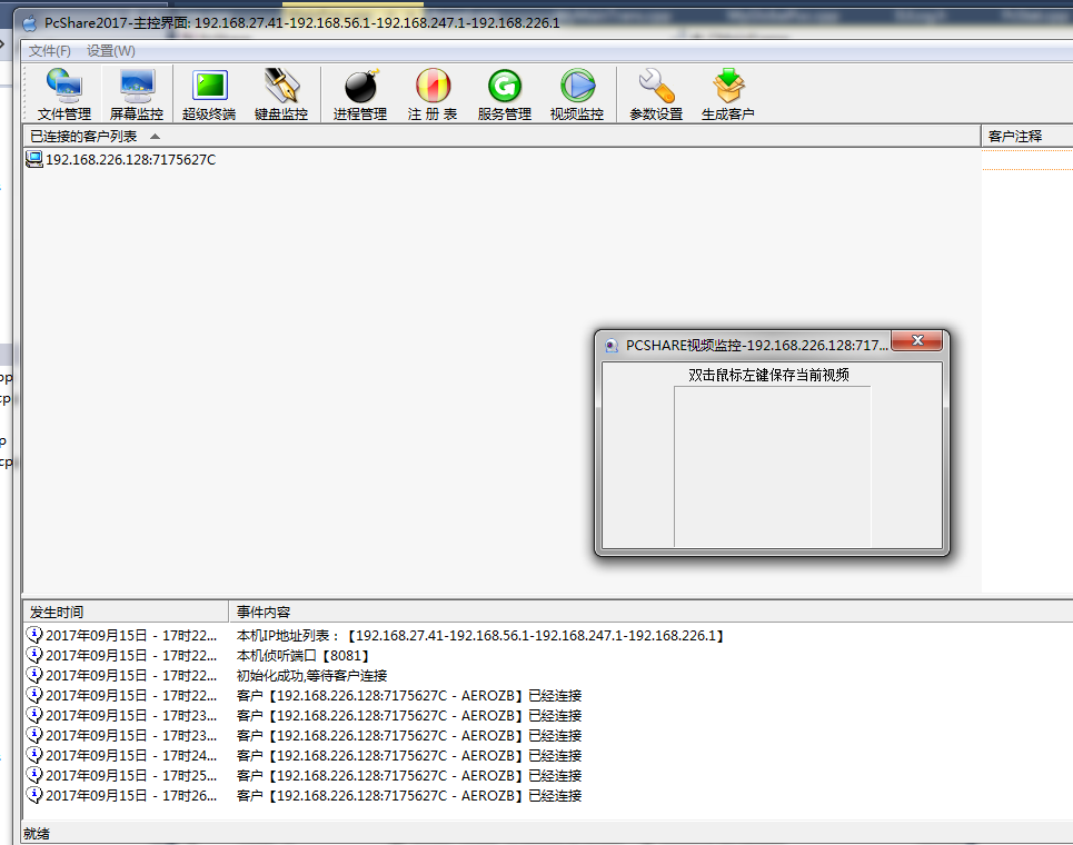 PCShare是一款强大的远程控制软件,可以监视目标机器屏幕、注册表、文件系统等。