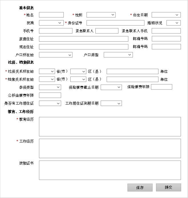 图7 x  拆分后的页面2:社保档案信息录入