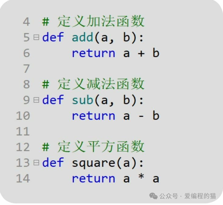 add()和sub()函数有两个数字参数,具有相同的函数类型。sq uare()函数只有一个数字参数,所以square()与add()、sub()函 数的类型不同。