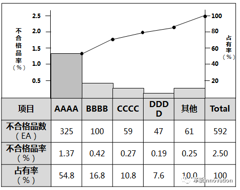 同时结合收入分布不平等程度的相关法则,制作不合格的帕累托图,选择少数重点项目(问题较大的少数重点项目)比多数轻微项目(问题小的,多的项目)更有利于解决问题