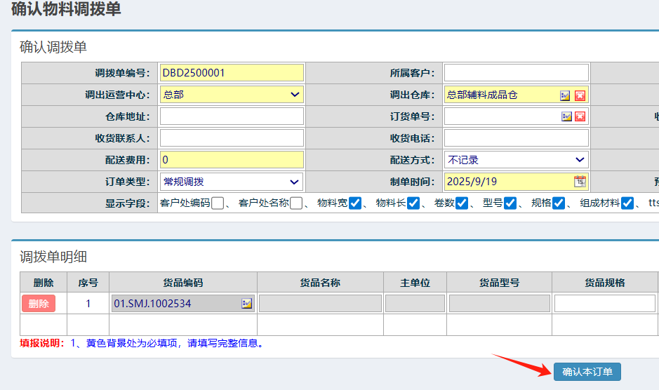 点晴模切ERP-调拨出库单-确认操作