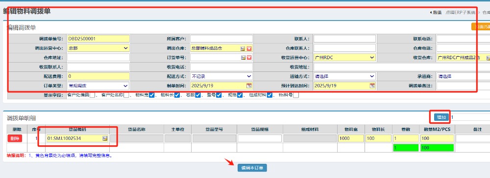 点晴模切ERP-调拨出库单-编辑操作