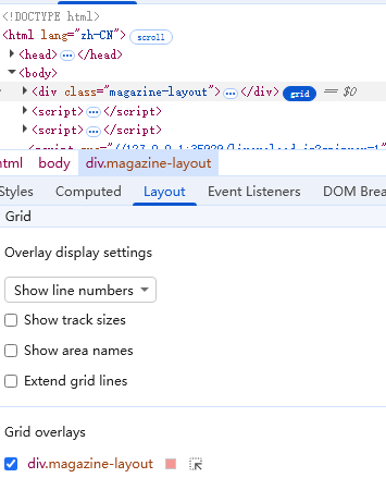 • 调试:Chrome DevTools → Elements → Layout → Grid  Overlay,能直观看到轨道。