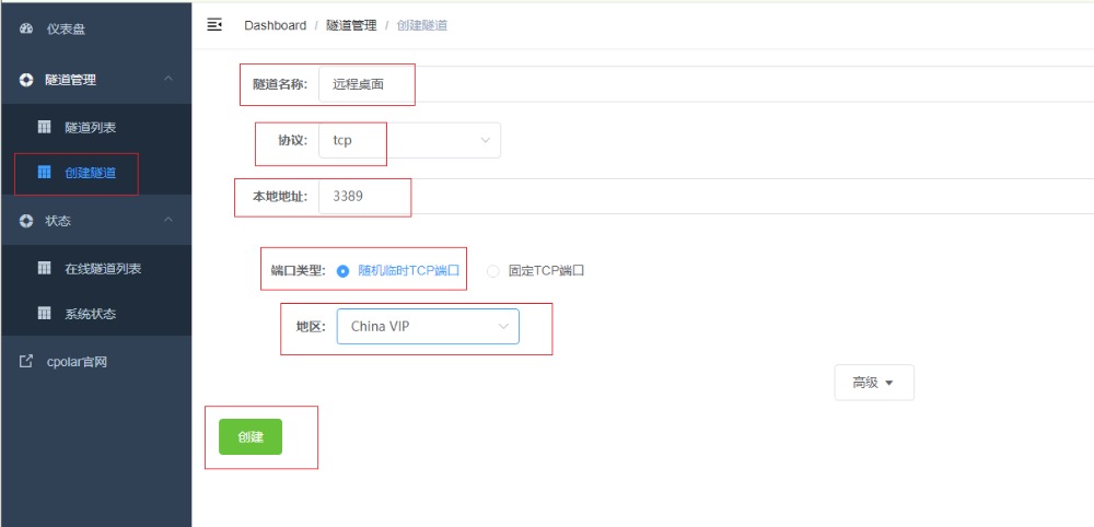 登录cpolar web UI管理界面后,点击左侧仪表盘的隧道管理——创建隧道:
