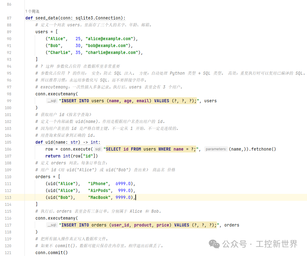 用标准库 sqlite3在本地创建 SQLite 数据库文件,并完成:建库/建表 → 插入数据 → 查询 → 更新 → 删除,全流程示例。