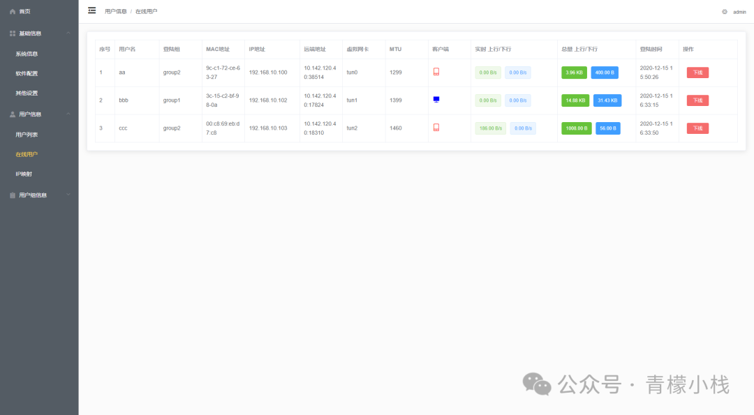 • 支持用户分组,灵活控制访问网段和路由。