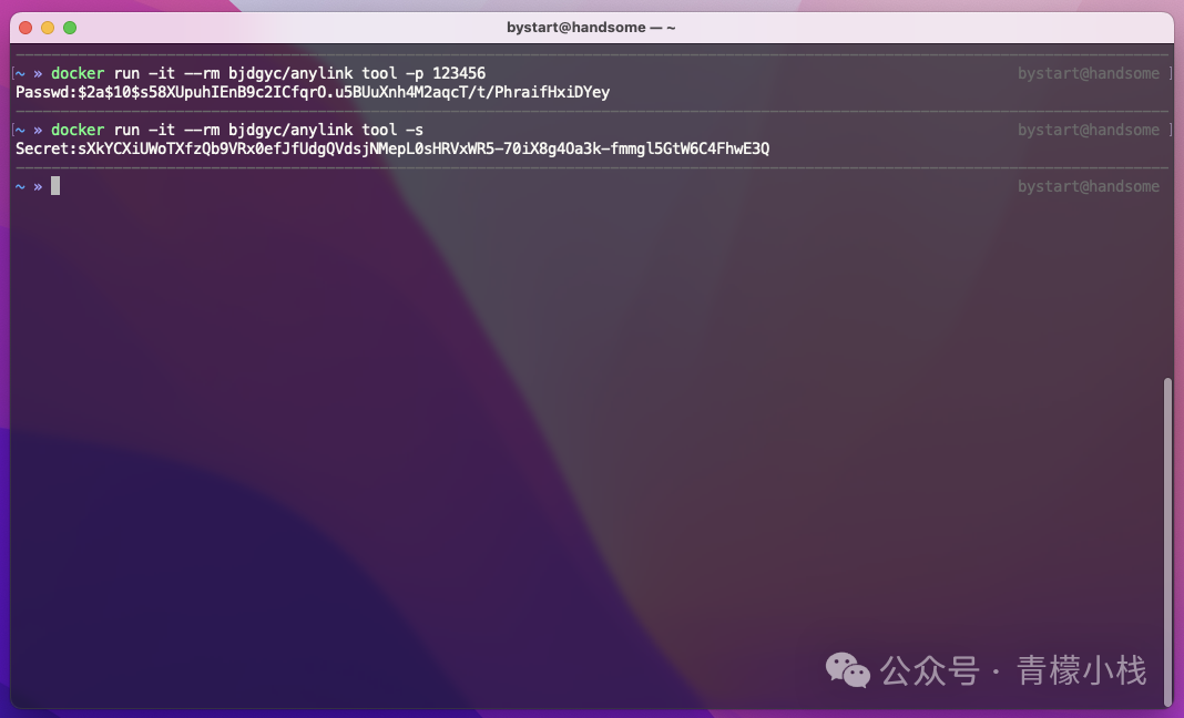 docker run -it--rm bjdgyc/anylink tool -s