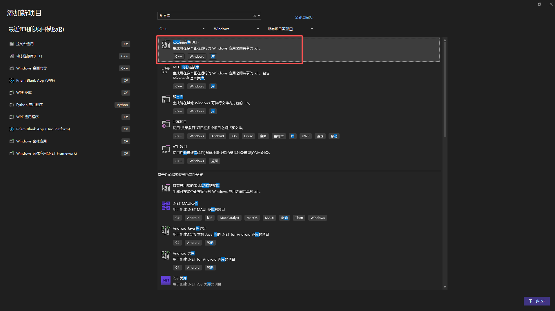 在解决方案上右键--添加--新建项目,建一个C++动态链接库工程,